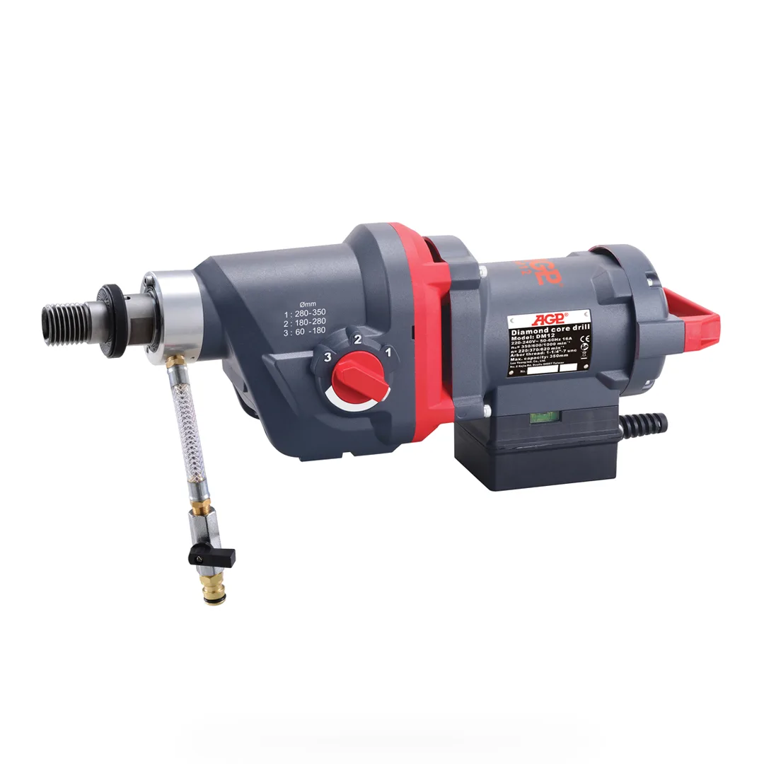 AGP DM12 er en kraftig 3500W kjernebormaskin med 3-trinns girkasse. Kjernebormaskinen har en bor kapasitet på opptil Ø350 mm og er utviklet for boring med stativ.