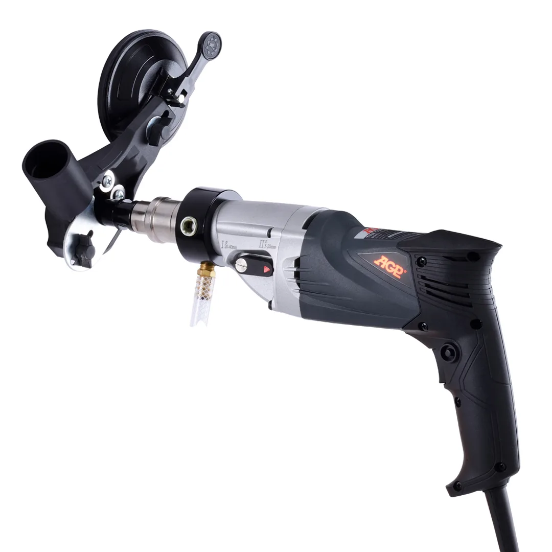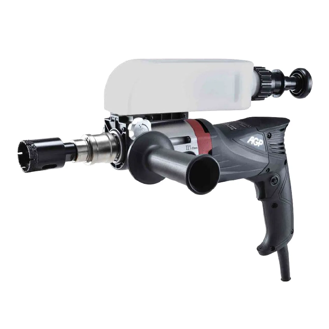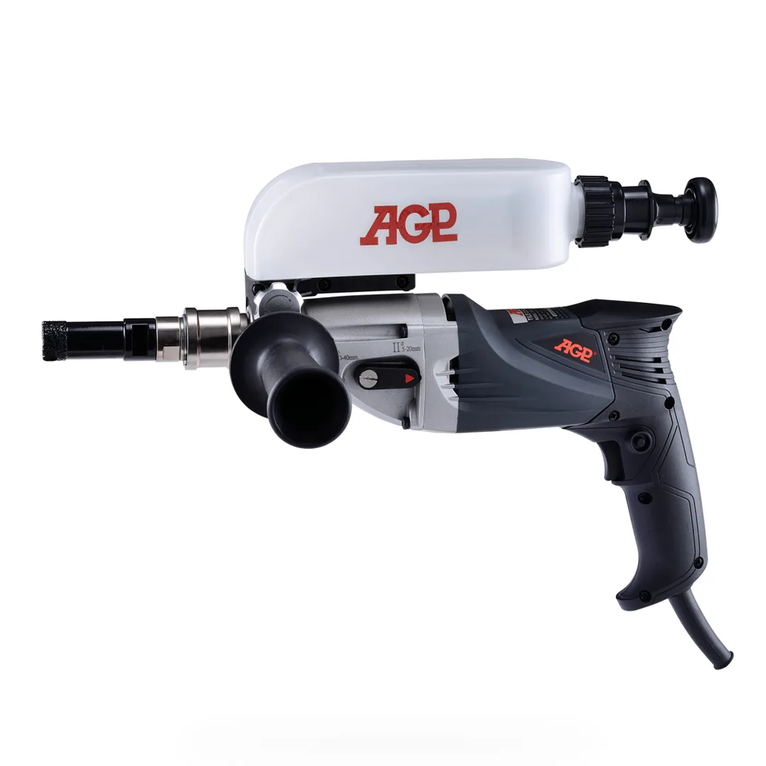 AGP TC402 spesialdesignet flisbormaskin med 2-trinnsmotor med 650W. Utmerket for våt eller tørr boring av små hull i fliser, keramikk, porselen, stein, betong, mur, glass o.l. Bormaskinen er utstyrt med hurtigløsende spindel for enkel fjerning av kjerner.