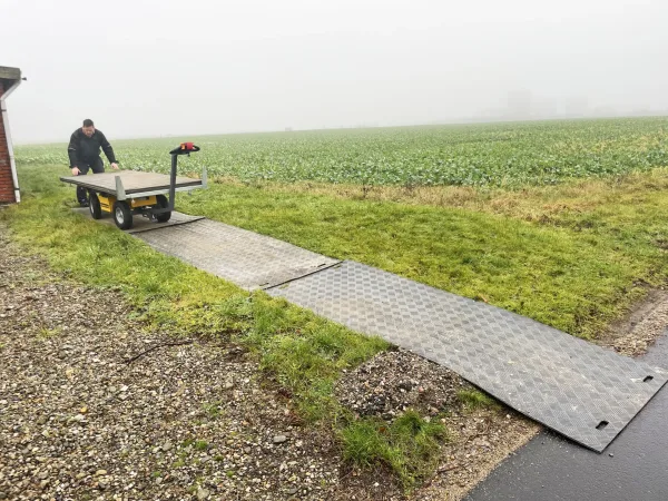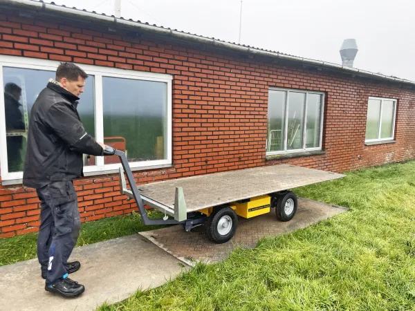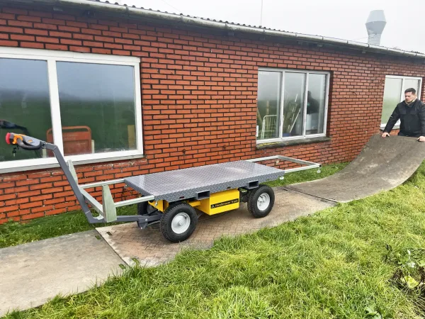 AL-Handimover 1500 Track er en batteridreven transportvogn for byggematerialer, plastkjøreplater og andre tunge enheter. Med en kraftigste 1500W trekkmotor, trinnløst justerbart lasteplan og batteridrift gir den effektiv transport over store avstander uten belastning for operatøren. Klarer en stigning på 6°