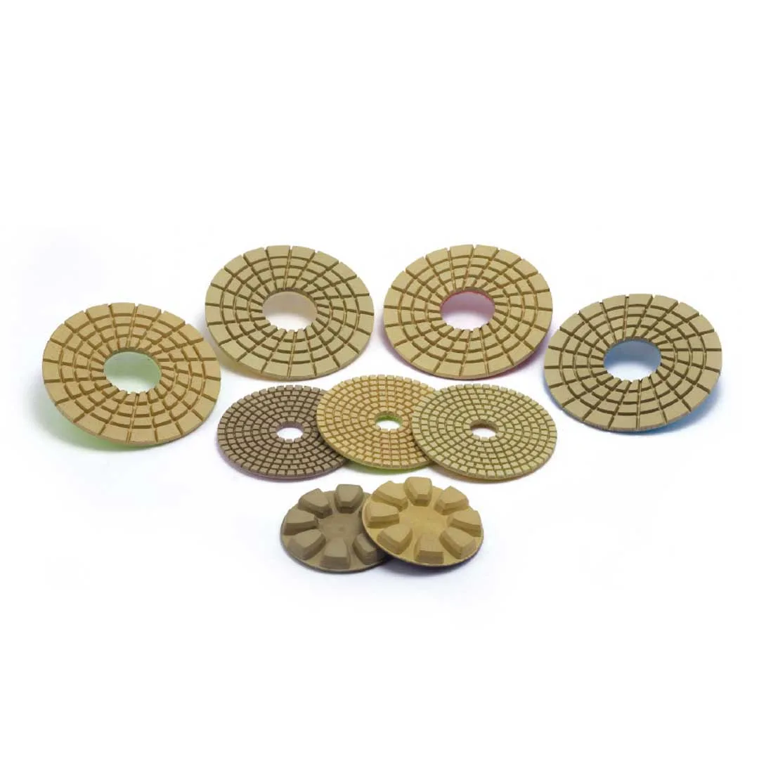Høykvalitets poleringsskiver for tørr- og våtsliping av betong. Skiver for M14 bakplate med borrelås feste. Skivene har svært høy kvalitet og tilfredstiller alle krav til profesjonell standard.