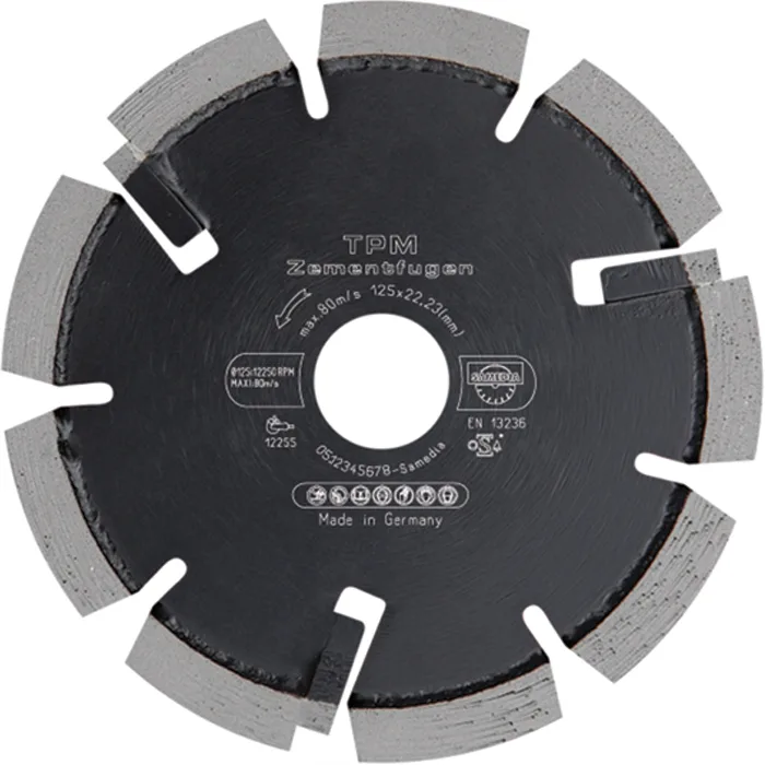 Diamantblad utviklet for utfresing av brede slisser i betong, leca, siporex og andre byggema-terialer. Brukes ofte til utfresing av fuger til varmekabel eller el.kabel og gamle fuger på f.eks teglsteinsfasader. Bladene har stor konsentrasjon av høykvalitetsdiamanter og lasersveisede segmenter for høy sikkerhet.