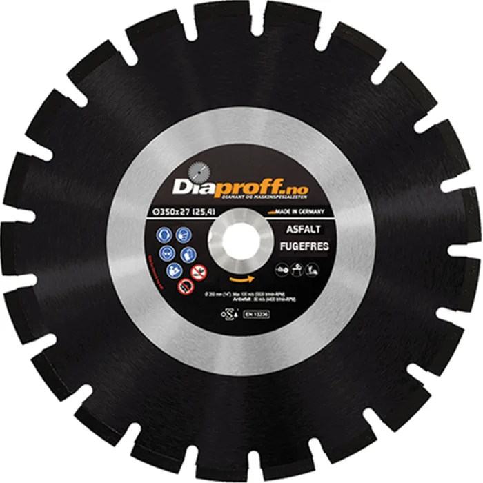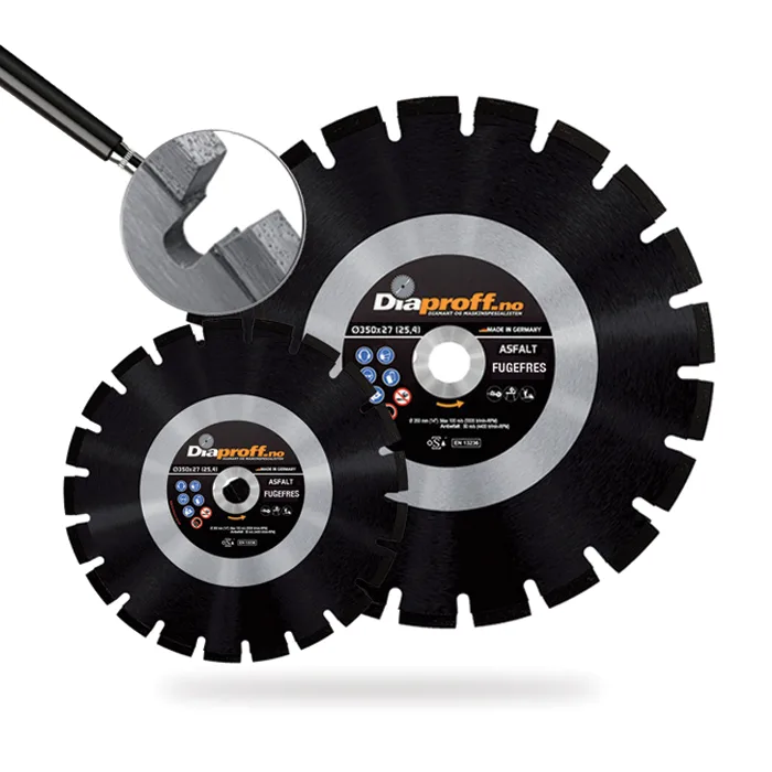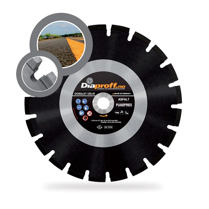 Diamantsagblad spesielt utviklet for utfresing av spor i asfalt. 6-20 mm bredde for kabel-nedleggelse. Avhengig av maskinens HK kan vi anbefale deg rett blad. Våre sagblader leveres med lasersveisede segmenter for maksimal livslengde. Dobbelsidig laser sveisede segmenter for optimal person sikkerhet i.h.h.t OSA.