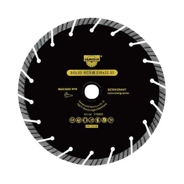 Sikkerhetsinformasjon: SOLID BCS-diamantbladet fra SAMEDIA er i samsvar med den europeiske normen EN 13 236.