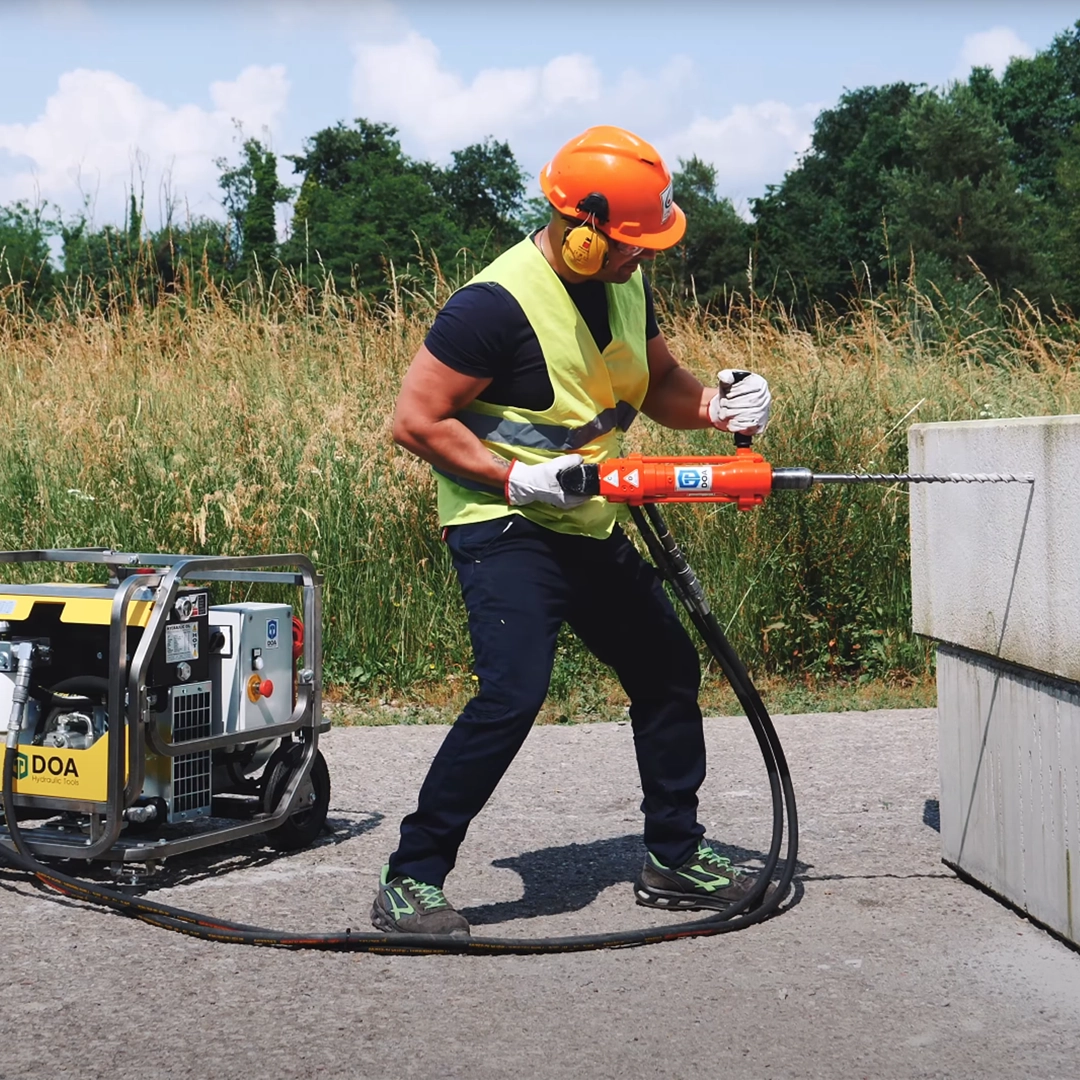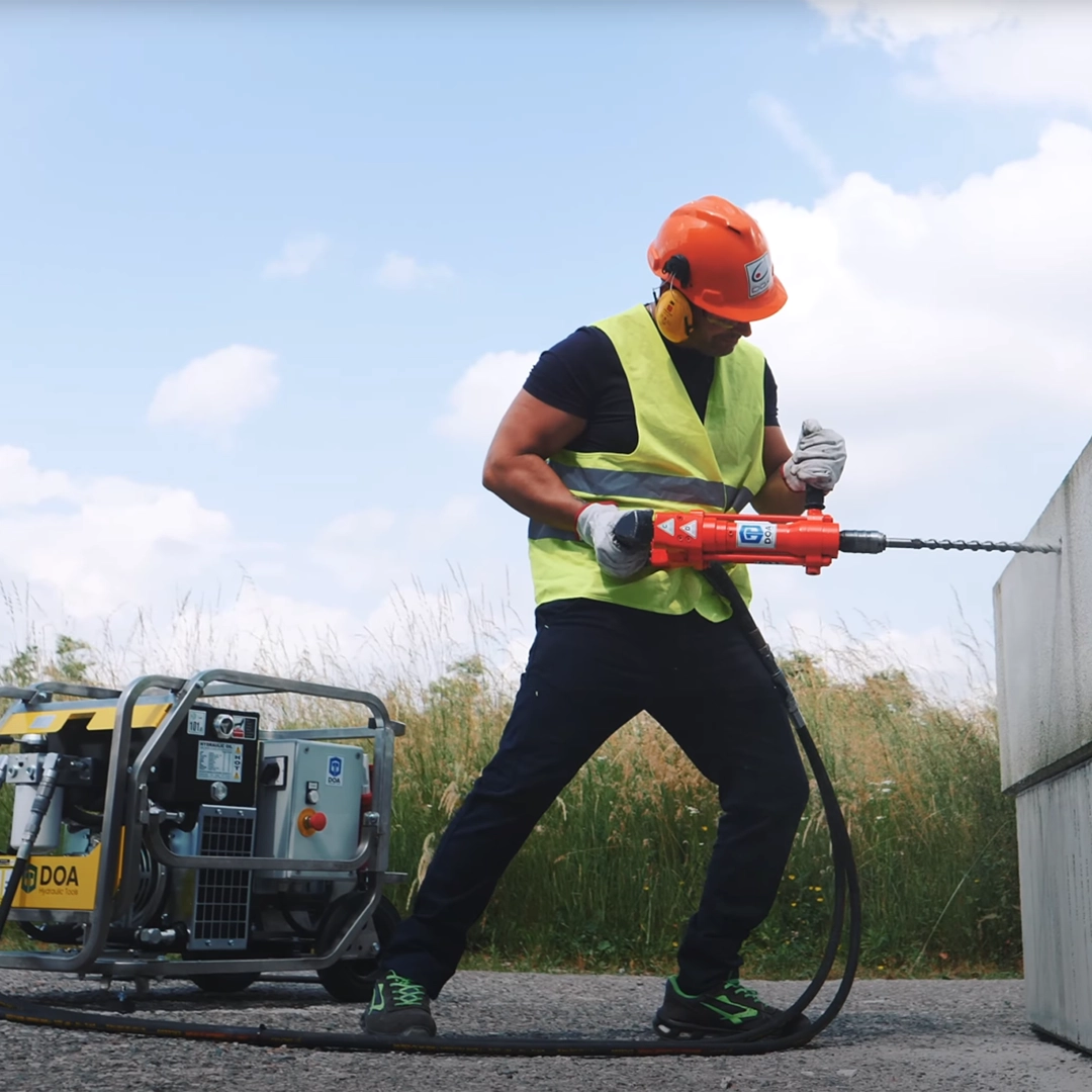 DOA HD13 er en kompakt og kraftig hydraulisk borhammer med SDS MAX. Den gir høy borehastighet, lav vibrasjon og lang levetid. Egnet for betong, murverk og naturstein – også for undervannsbruk.