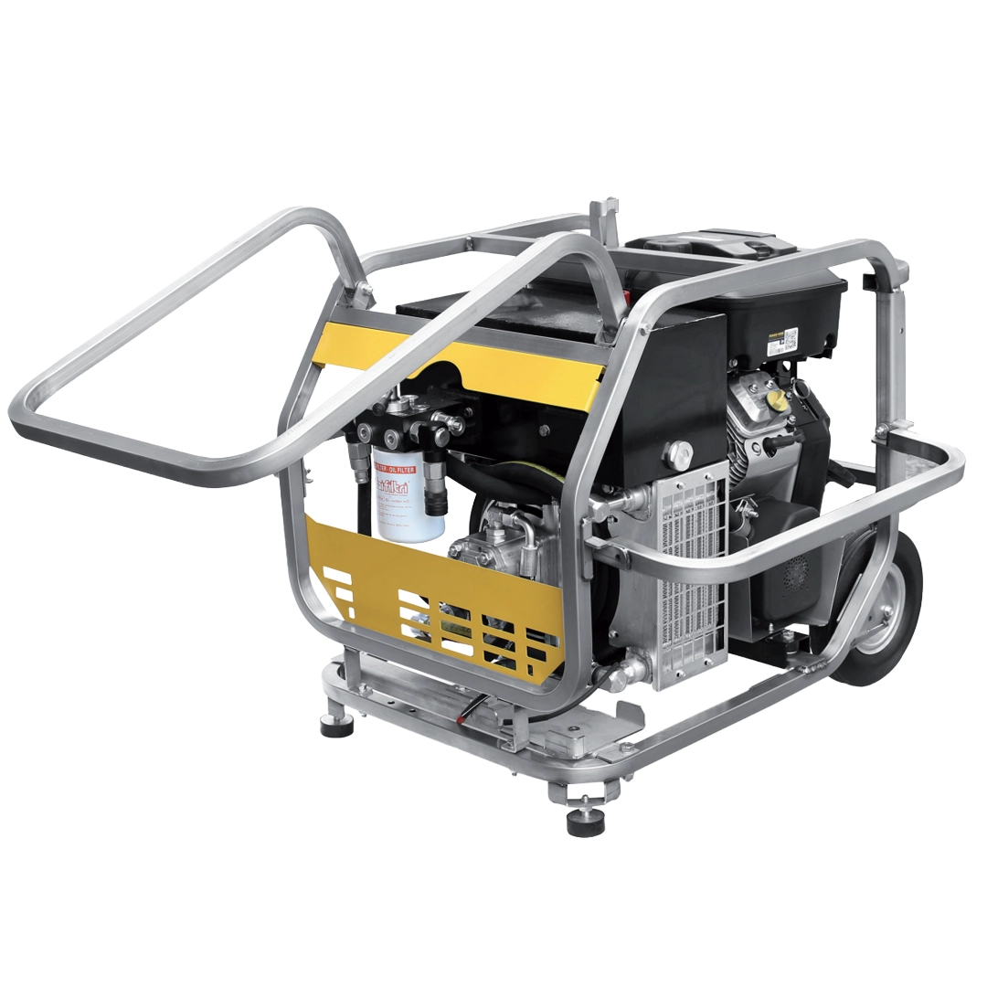 Det er et bensindrevet hydraulikkaggregat utviklet for profesjonell bruk innen bygg, anlegg og industri. Aggregatet leverer høy hydraulisk ytelse til krevende verktøy og arbeidsoppgaver.