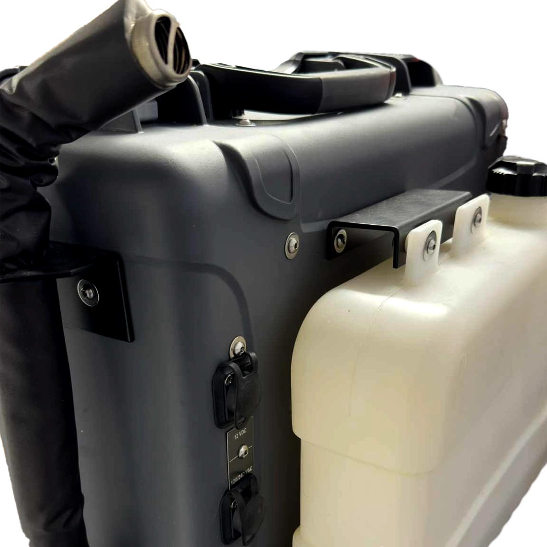 Plasser enheten ute, fyll drivstoff og koble til valgt strømkilde. Maskinen trekker inn kald luft, varmer den opp og blåser den ut gjennom den medfølgende 3,3 m slangen. Den børsteløse viften leverer opptil 168 m³ luft i timen og sørger for jevn varmefordeling. Den kan også brukes til inntak av kaldere luft ved behov.