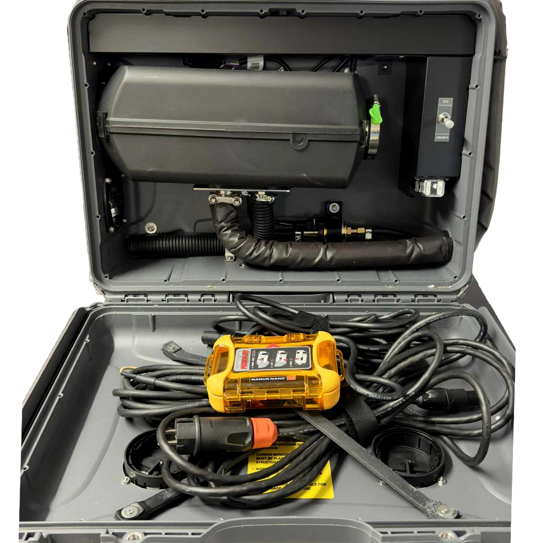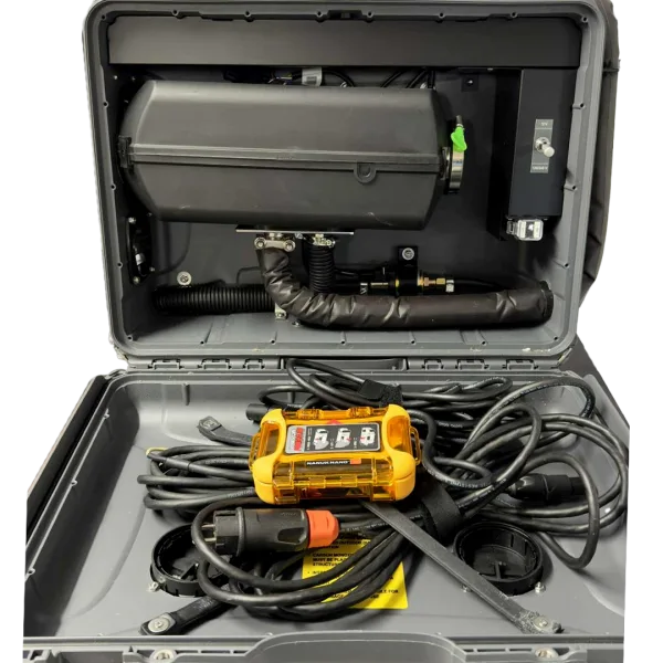 Varmeren er integrert i en låsbar, slag- og værbestandig Nanuk-koffert som tåler hard bruk. Analogt betjeningspanel gir enkel kontroll over luftmengde og temperatur. Den leveres med 4 meter strømledning og er bygget med europeiske kvalitetskomponenter for lang levetid og driftssikkerhet.