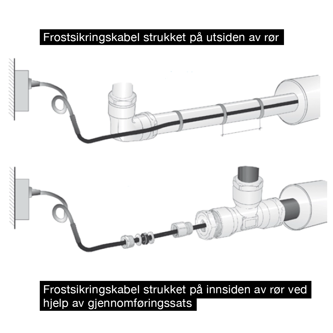 Selvregulerende varmekabel til bruk i eksisterende rør og avløp som er utsatt for frostskader, samt en rekke andre bruksområder. Dette er en billig forsikring mot frostskader og ikke minst påfølgende vannskader. Legges enten inne i rør eller surres rundt rør.