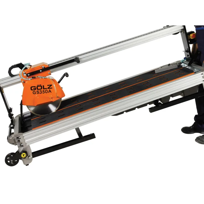 Robust og profesjonell aluminiumsbrosag, for kapping av granitt, flis, marmor o.l. GS350A-ML kutter opptil 110 mm i dybden og 1300 mm i lengden. Kan tiltes for skråskjøre i 45°.