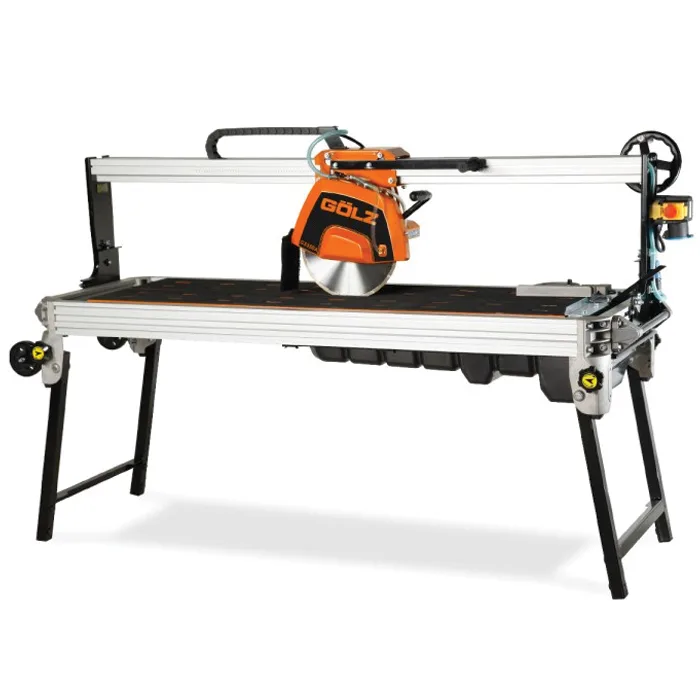 En robust og profesjonell aluminiumsbrosag fra Gölz, for presis kapping av fliser, granitt, marmor o.l. Sagen er kompakt, vannkjølt og kommer med avtakbart vannkar og støttebord for enkel rengjøring. GS350A-120 kutter opptil 110 mm i dybden og 1000 mm i lengden. Bladhodet kan tiltes til en 45° vinklet for rask og enkel skråskjæring