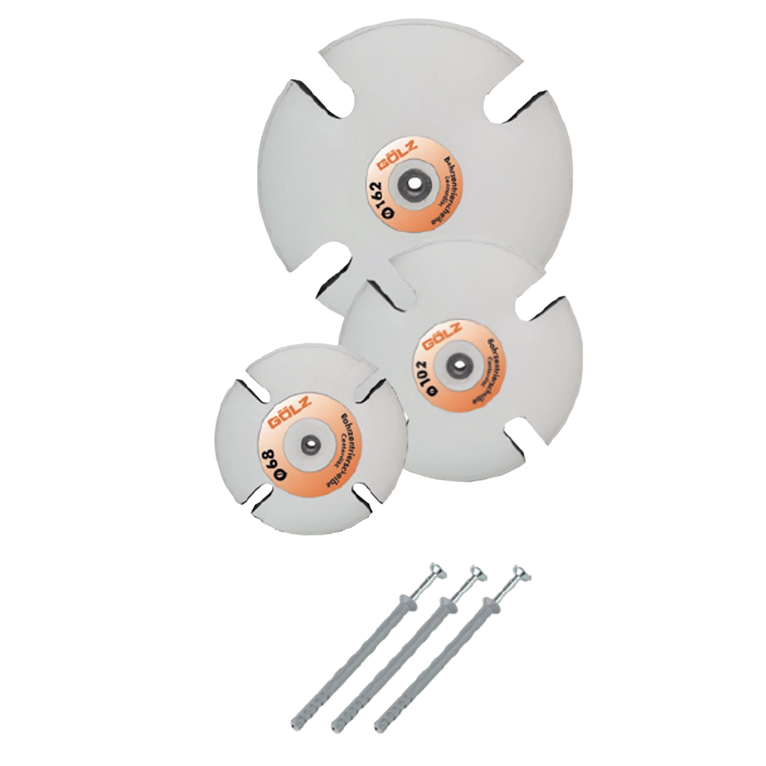 Gölz Guido sentreringsskive er et praktisk hjelpemiddel for nøyaktig frihånds kjerneborring. Skiven sørger for at diamantboret starter presist og hindrer at boret vandrer ved oppstart. Dette gir mer presise hull og gjør frihåndsboring enklere og sikrere.