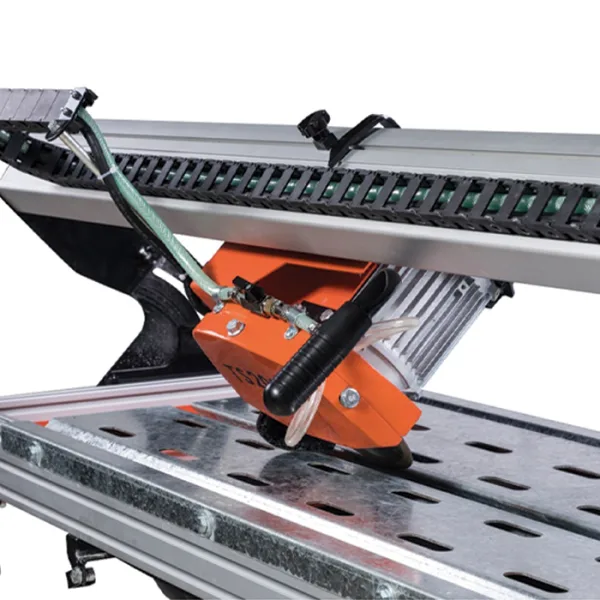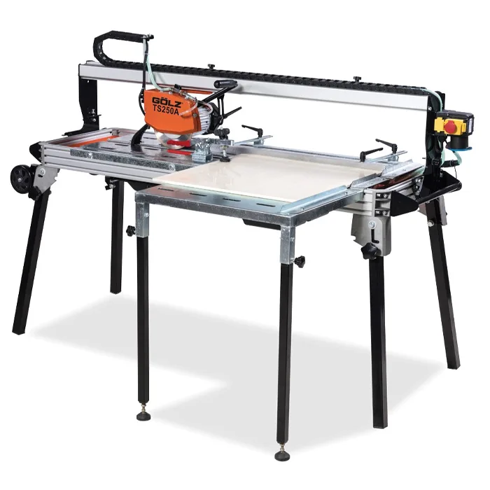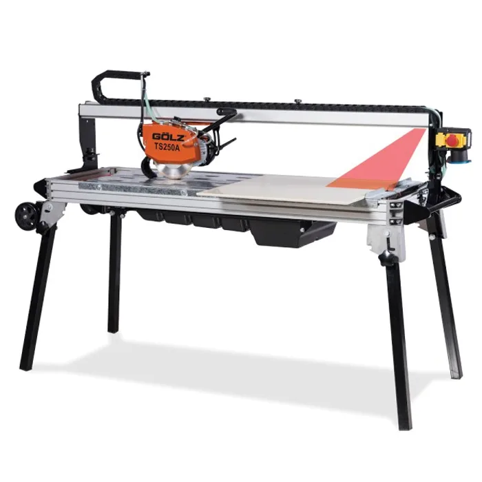 Profesjonell flissag fra Gölz for kapping av naturstein, flis, skifer o.l. TS250A kutter opptil 65 mm i dybden og 1040 mm i lengden. Kan tiltes for skråskjøre i 45°.