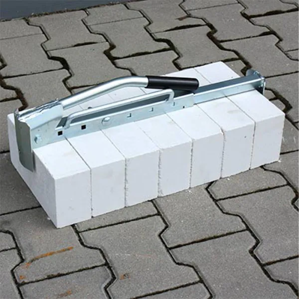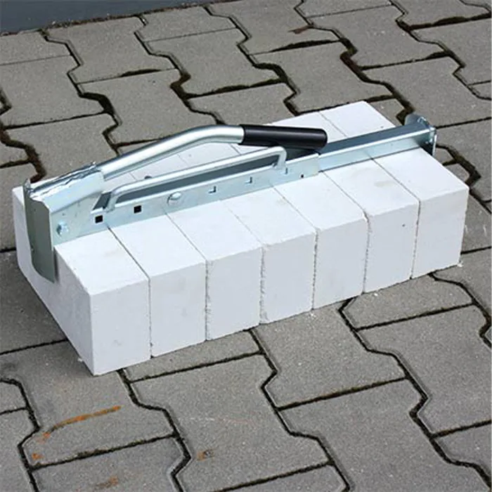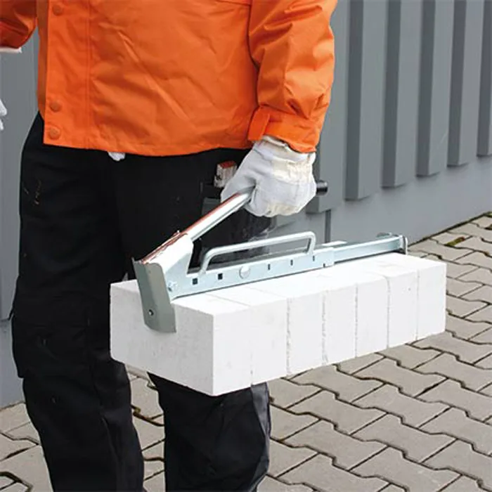 Håndholdt steinklype for transport av betong- og murstein fra pallen til bruksstedet.