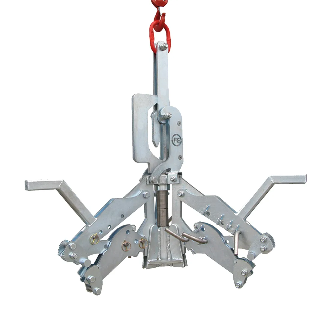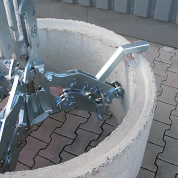 Robust steinklype designet i vridningssikkert galvanisert stål. Klypen er konstruert for sikker transport og plassering av alle typer sirkel formede elementer, som kumringer, kjegler, baser og deksler. Løfteklypen er laget med en automatisk utløser for alle former for operasjon uten assistanse.