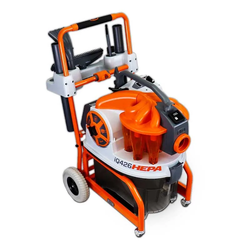 Med en sugekapasitet på 190 CFM og avansert flertrinns syklonfiltrering, fanger den opp store partikler før de når filteret. Resultatet? Bedre ytelse, mindre vedlikehold og en mer effektiv arbeidsdag. Q426HEPA bruker et sertifisert HEPA-filter som fanger opptil 99,97 % av støvet ned til 0,3 µm. Dette filteret er designet og testet for å overgå globale standarder for støvavsugsmaskiner, og vil hjelpe deg med å holde deg OSHA-kompatibel. Med 4-trinns filtrering kan iQ426HEPA separere støvpartikler av forskjellige størrelser i fire forskjellige stadier, og mindre enn 1 % av støvet vil noen gang nå filteret.