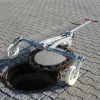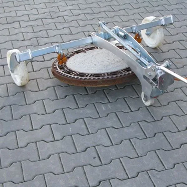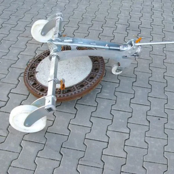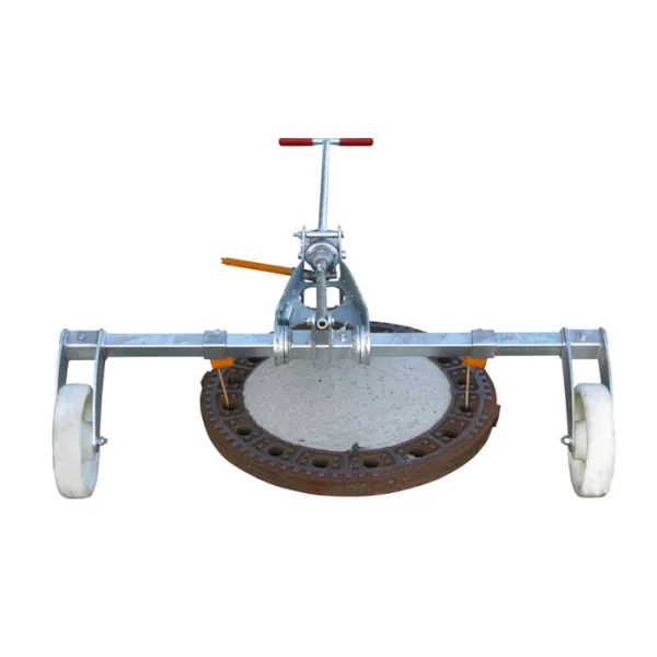 Enkelt kumlokk løfter for transport av kumlokk ved hjelp av en hydraulisk sylinder og håndpumpe. Maks. Løftekapasitet 1500 kg.