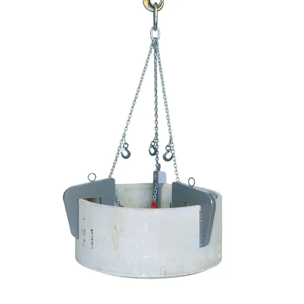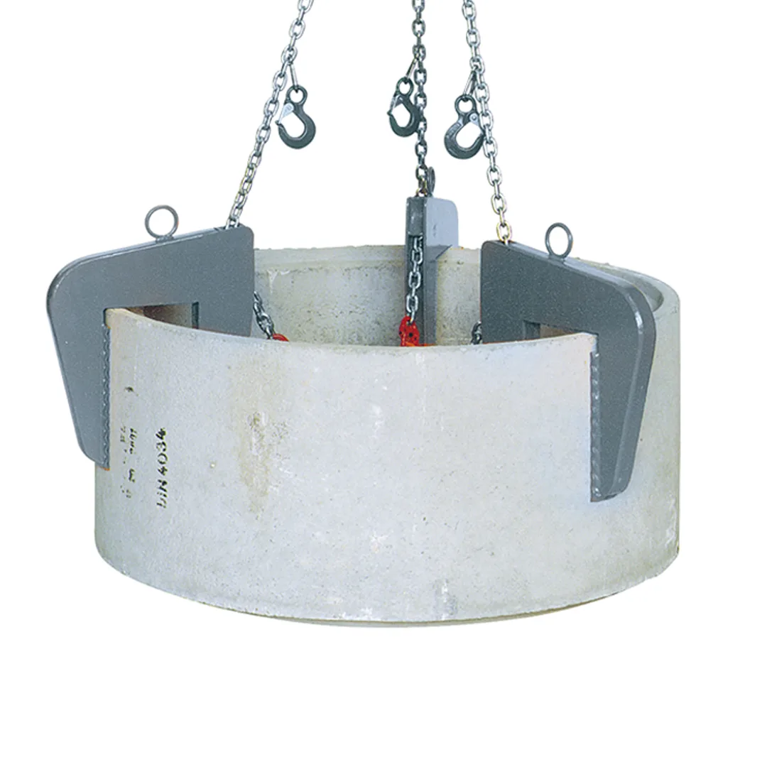 Den robuste kumring løfteren fra Eichinger er laget av vridningsbestandig, lett stålplatekonstruksjon for enkelt transportering og plassering av vertikale rør og kjegler.