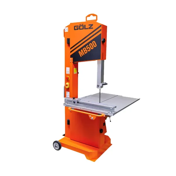 Robust og mobil båndsag i murstein med sammenleggbart skjærebord for kapping av poroton- og porebetongblokker.