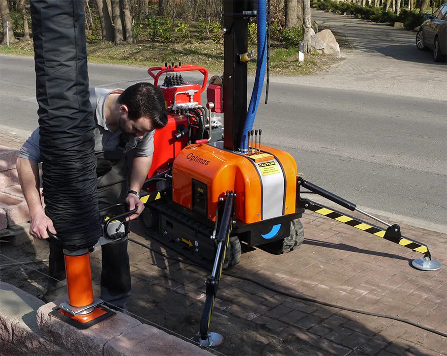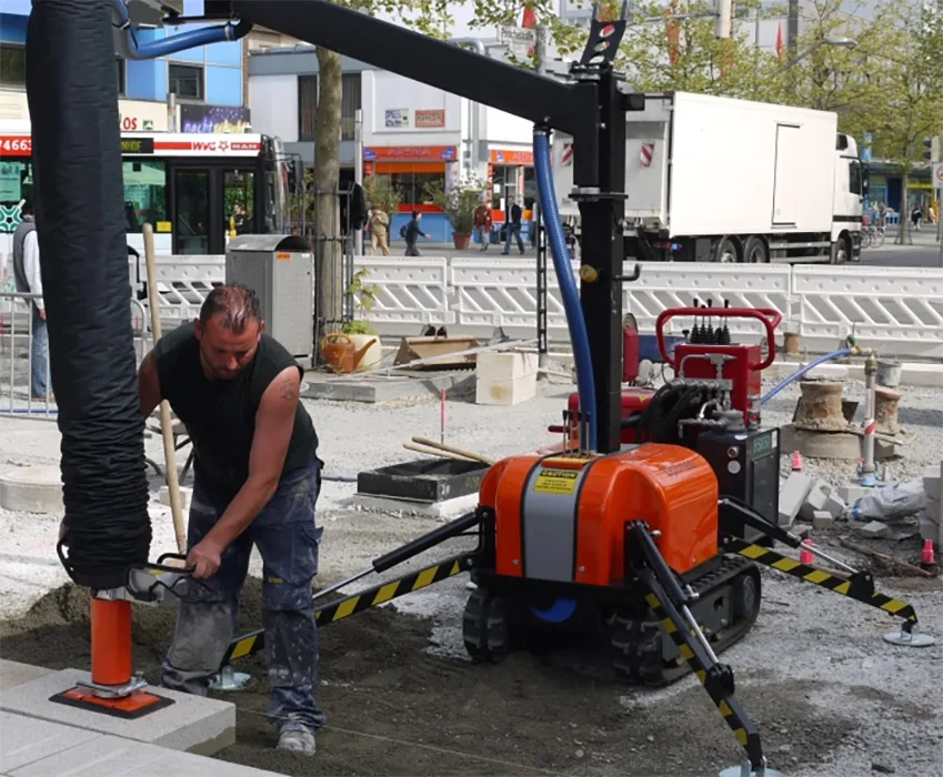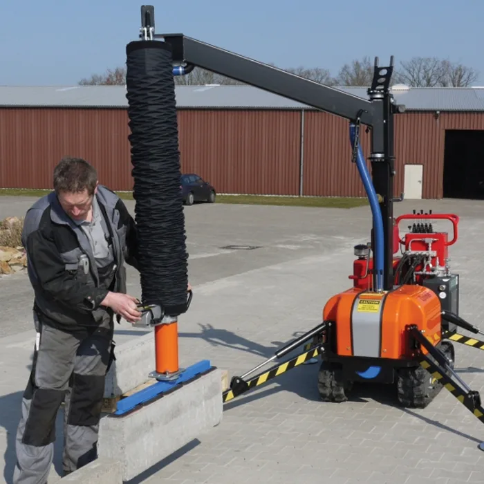 Vakuumløfteren kjører med beltedrift som gjør det enkelt å manøvrere, selv i vanskelig terreng. Maskinen er også utstyrt med 4 hydraulisk styrte støtteben, noe som gjør at den enkelt kan balanseres. Vakuumløfteren opererer som om materialene er vektløse som resulterer i en økonomisk og sunn arbeidspraksis, da operatør ikke vil bli belastet.
