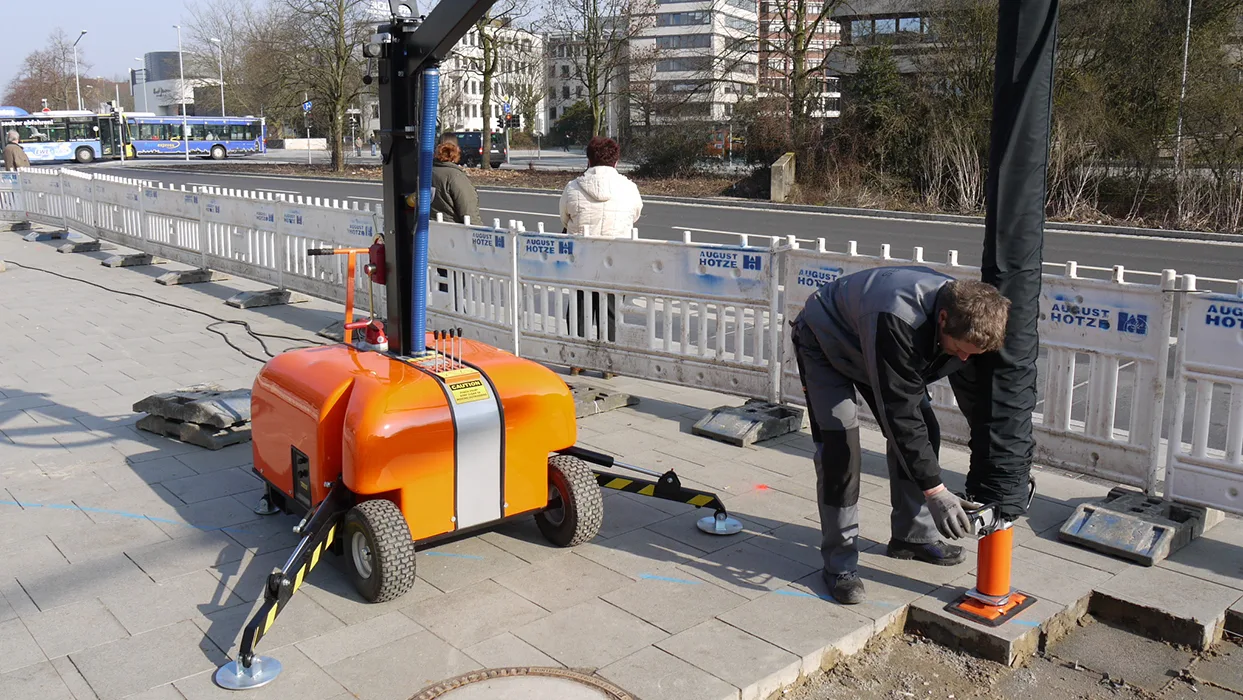 Utstyrt med 4 hydraulisk styrte støtteben gjør at maskinen enkelt kan balanseres og gir en sikker posisjonering. Vakuumputene er enkle å bytte ut med et enkelt hurtigbyttesystem. Masten kan enkelt legges sammen av en person på få minutter. Vakuumløfteren har et kompakt design for enkel transport og daglig lagring på arbeidsplassen.