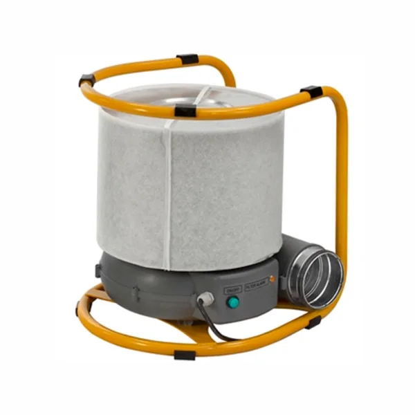 Luftrenseren er bygget opp rundt en kraftig sentrifugalvifte, som sikrer høy luftstrøm selv når filteret er tett. Ventilatorhuset er utført i kraftig og slagfast termoplast. Det robuste rørstellet er designet for å beskytte luftrenseren og sikre en enkel håndtering og transport. Luftrenseren er utstyrt med en indikasjon for 70% tett filter. Kan leveres med tilbakeslagsventil som sikrer mot tilbakestrømning av eventuelt giftige gasser.