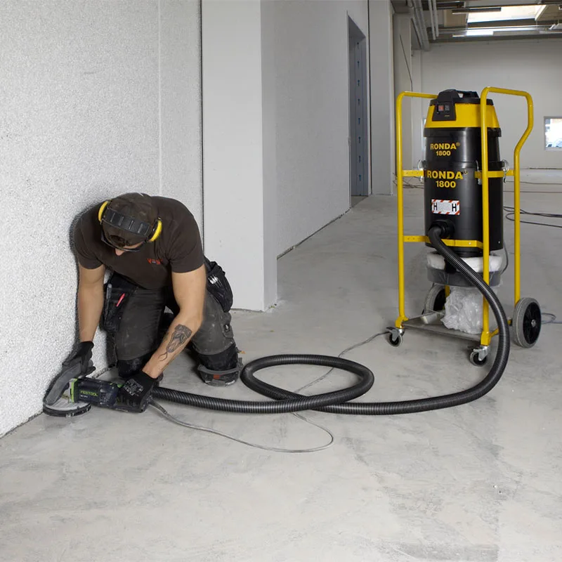 RONDA® 1800H Power er en kraftig industristøvsuger med H-sertifisering, for effektiv støvsuging av større mengder fint og helsefarlig støv. Materialet samles i en Longopac-pose, noe som gjør gir en nesten støvfri tømming. Maskinen kan benyttes til alminnelig støvsuging eller kobles direkte til en slipe- og skjæremaskin.