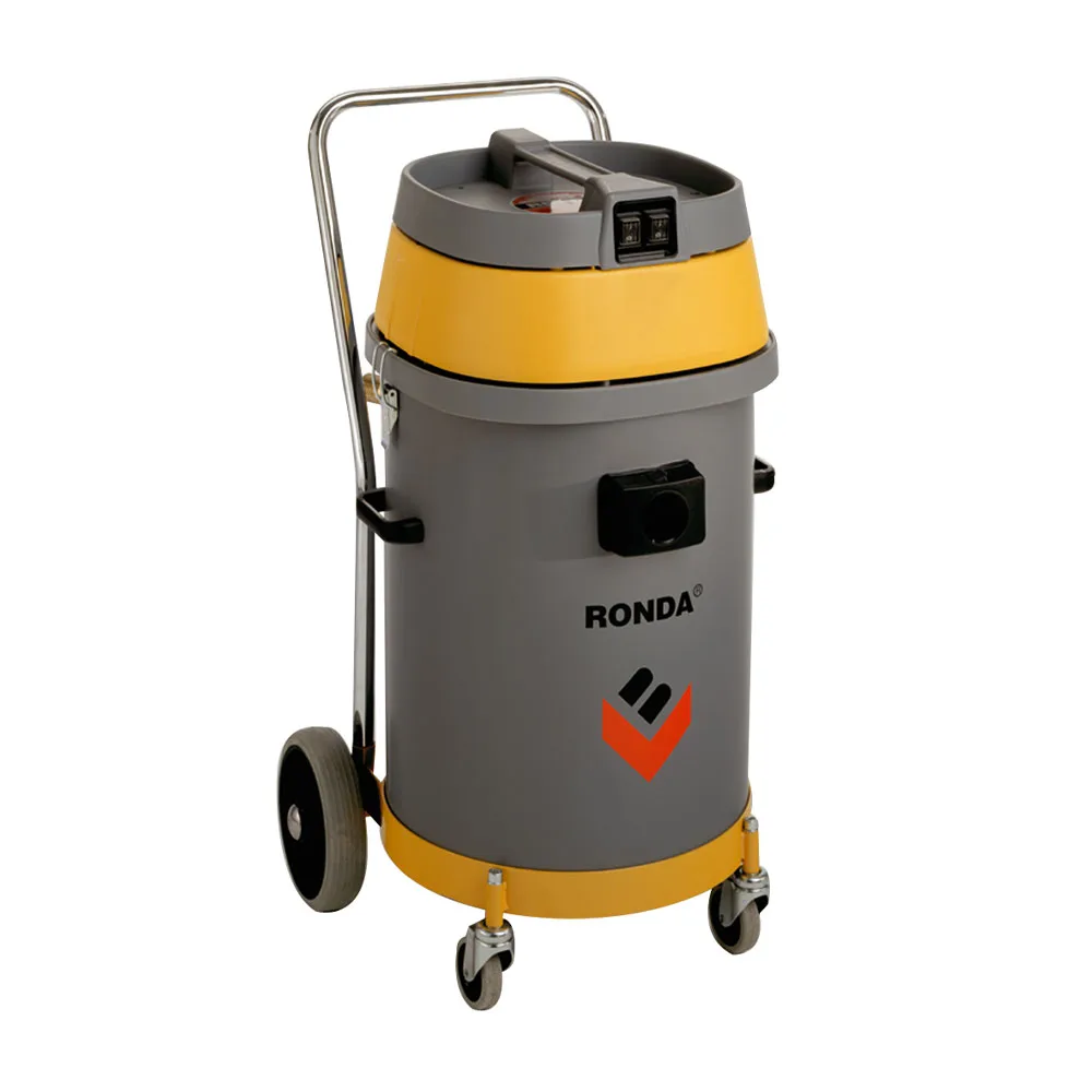 RONDA® 500 industristøvsuger har en kraftig sugeevne på 2400W, takket være to motorer er denne maskinen ideell for støvsuging av både våte og tørre materialer, inkl. slam. RONDA® 500 er utstyrt med en syntetisk oppsamlingspose for tørt støv. Skal maskinen brukes for å fjerne våte materialer kan en spesiell syntetisk pose med høy dreneringskapasitet installeres (tilbehør). Det robuste designet med beholder og motortopp i polypropylen hindrer bulker og gjør maskinen svært miljøvennlig, da alle materialene kan resirkuleres.