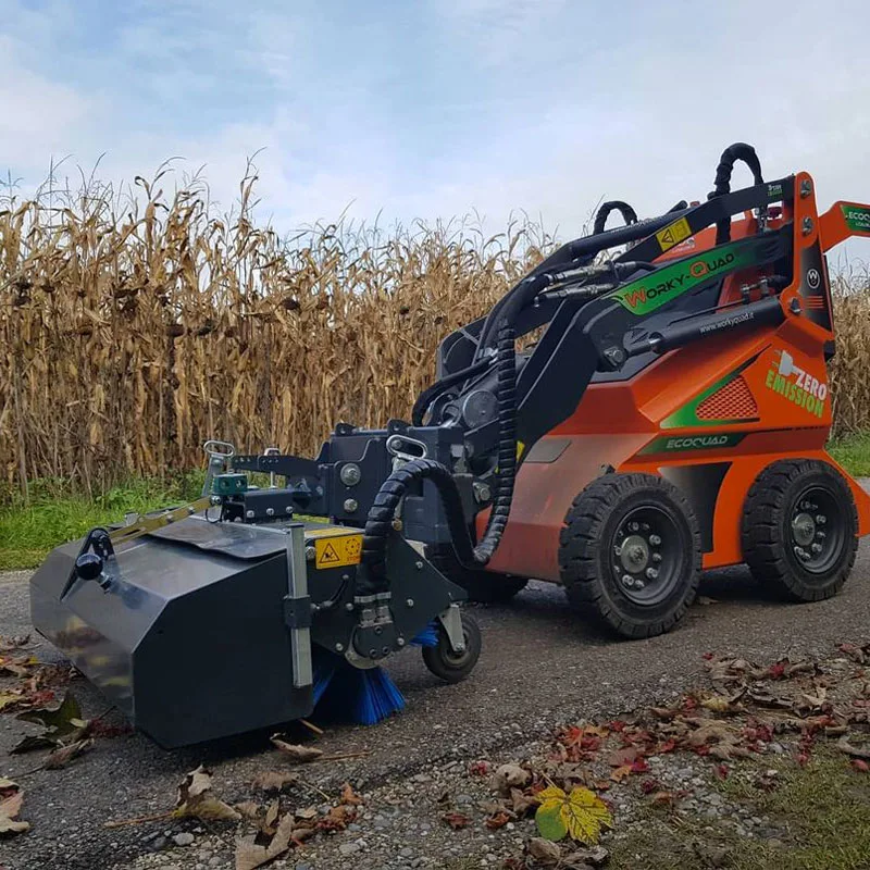 Roterende børste med avfallskasse i høyeste kvalitet, designet for rengjøring av harde overflater f.eks. asfalt og betong. Børsten samler avfallet direkte i avfallskassen.