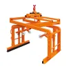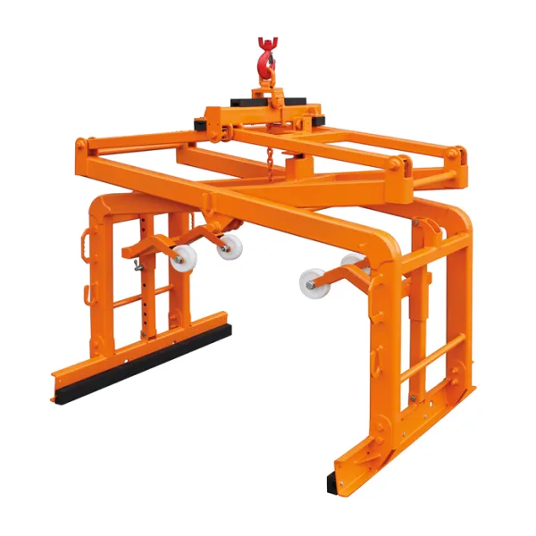 Passer til håndtering av alle typer betongprodukter, som plater, stålstrips, murstein og steinblokker. Utstyrt med en automatisk åpne- og lukkefunksjon som gjør det mulig for en enkelt operatør å stable eller løfte av pallen. Foret med harde gummi kjever for å minimere skade på lasten.