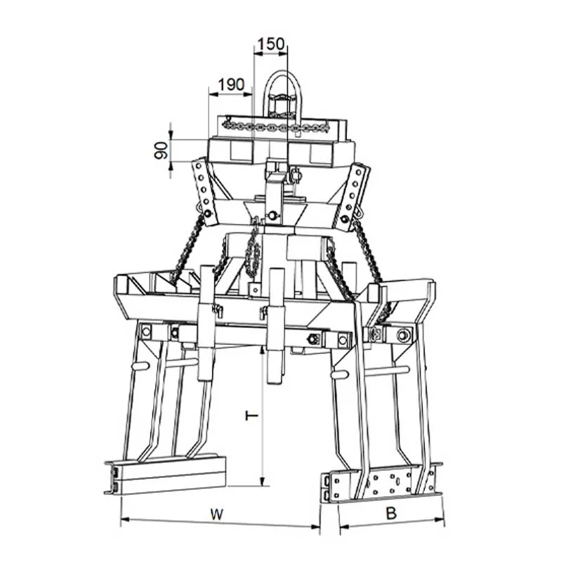 Mekanisk steinklype med sakseløft for sikker og pålitelig håndtering av byggematerialer i bulk. Klypen har tilpassede feste for gaffeltruck, med manuell dreier og et fjæringsøye for kranoperasjon. Klypen kommer med utskiftbare gummierte kjever og helautomatisk gripe- og slippefunksjon.