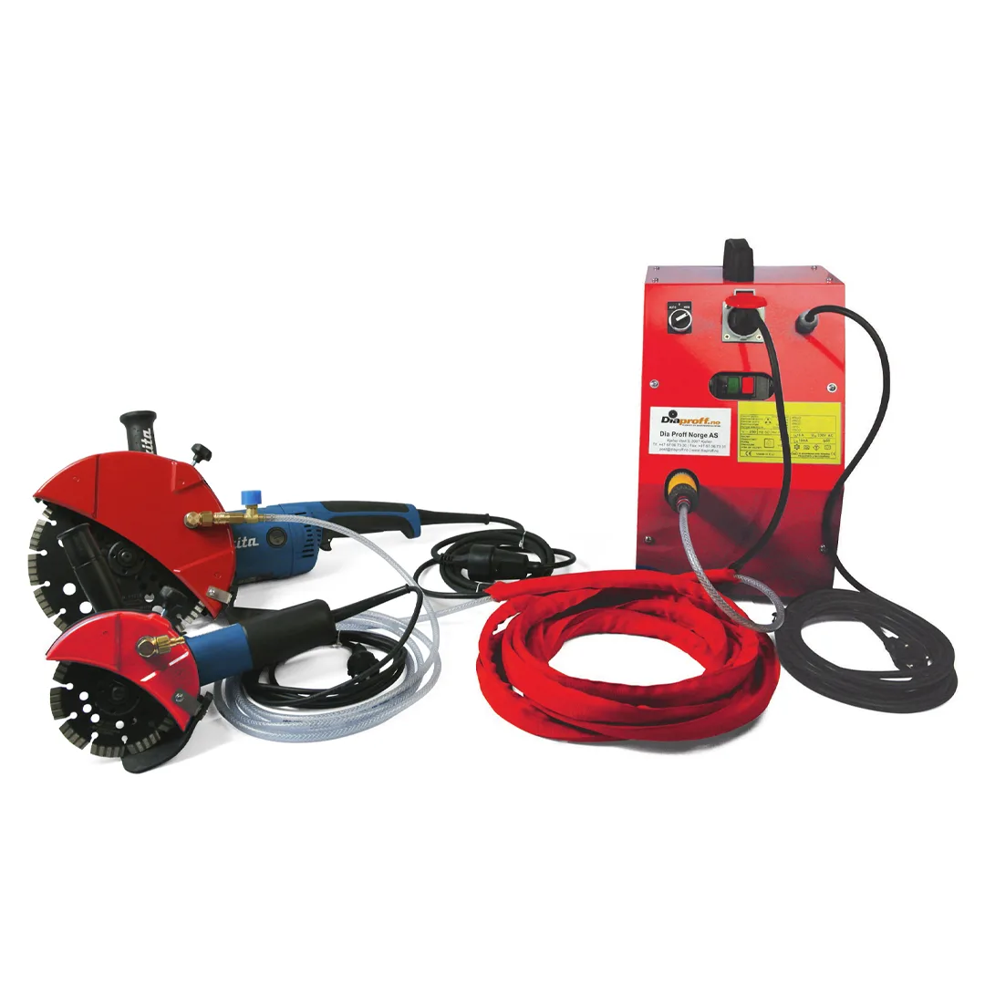 Profesjonelt system for effektiv fjerning av støv ved kutting av betong og naturstein. Selges løst eller som komplett sett.