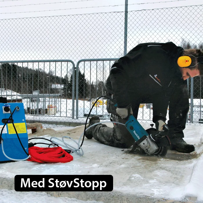 StøvStopp er et profesjonelt system for fjerning av støv. Maskinen er enkel å håndtere og kan brukes til alle typer vinkelslipere. StøvStopp tilføyer vanndamp til diamantsagbladet og med det fjerner 99% av alt støv. Dette resulterer i raskere kutt, den øker levetiden på diamantsagbladet, og ikke minst bedrer arbeidsmiljøet.