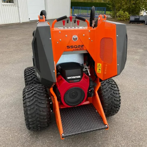 Minilaster SSQ22 er bensinversjonen i SSQ-serien. Den kompakte maskinen har en bredde på kun 105 cm som gjør at den enkel kommer frem på trange områder. Utstyrt med en kraftig Honda HGX690 motor håndterer denne maskinen de fleste jobber og er utmerket for arbeid som innebærer flytting store masser som f.eks. jord, grus og sand.